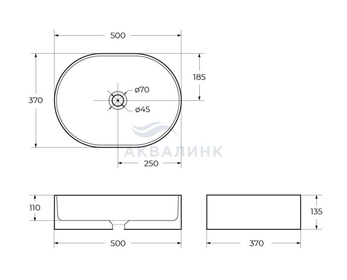Раковина BelBagno BB1483 500х370 накладная
