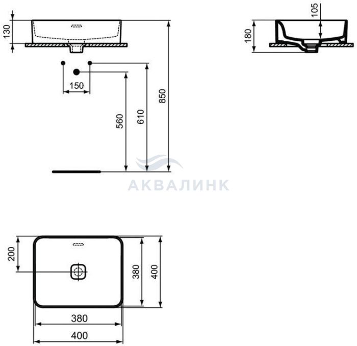 Раковина Ideal Standard Strada II Square Vessel 40 T296201 без отверстия перелива, накладная