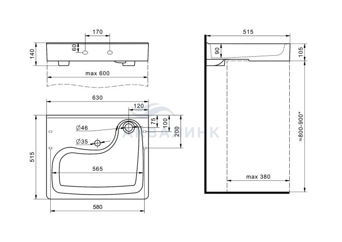 Умывальник "Клио-50" над стиральной машиной с кроншейнами (д515 х ш630 х в140)