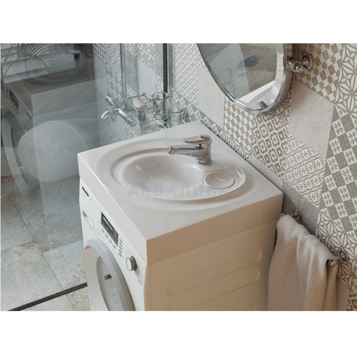 Madera Perla 600 Раковина для ванной комнаты для установки над стиральной машинкой искусственный мрамор Верхний слой Гелькоута образует декоративно защитное покрытие Габариты умывальника, мм 600х550х110 Глубина чаши умывальника, мм 85 Глубина стиральной машины не должна превышать 48 см.