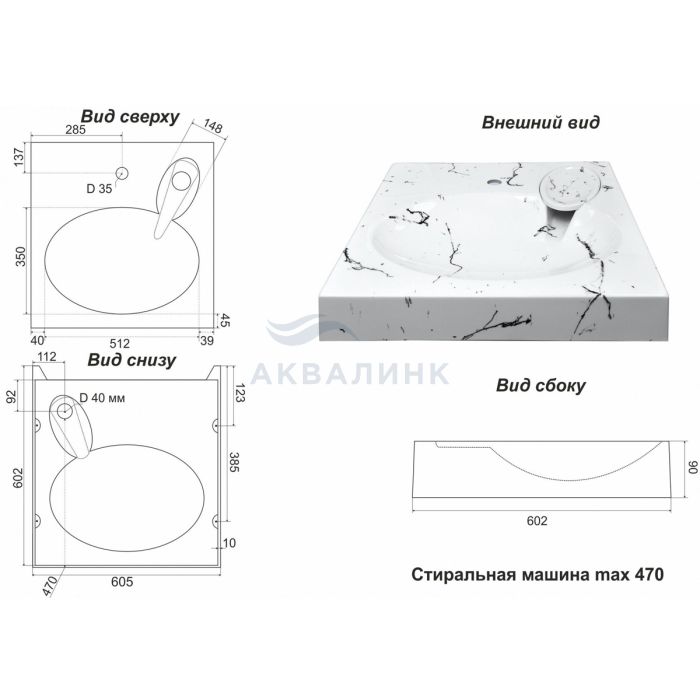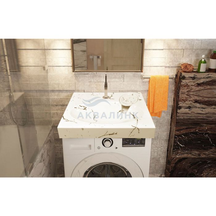 Раковина над стиральной машиной 60х60 Azario Carmen с сифоном белый мрамор