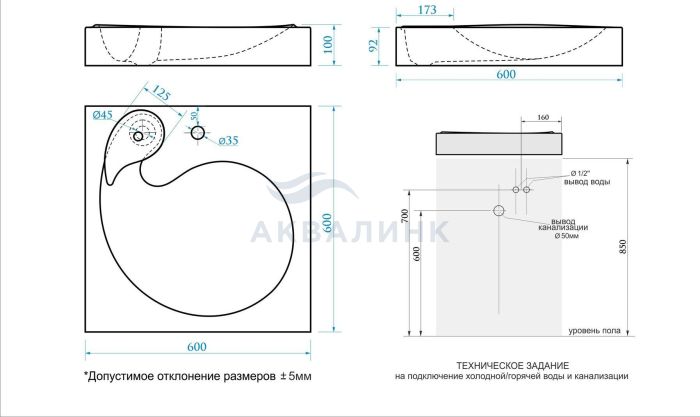Лилия V60 "длина - 595 ширина - 595 глубина - 110" Материал-литьевой мрамор;раковина устанавливается на кронштейны над стиральной машиной(не допустимо монтировать на столешницу стиральной машины). Комплектация: В комплект входят два кронштейна,четыре закладные в раковине болт-гайка, упаковка -пятислойный белый гофрокартон и пупырчатая пленка.