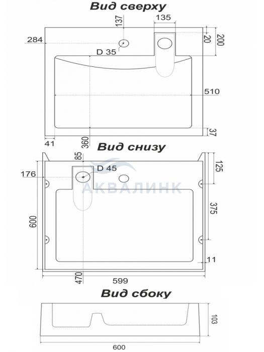 Раковина над стиральной машиной 60х60 Виктория (Стандарт) черный мрамор с сифоном