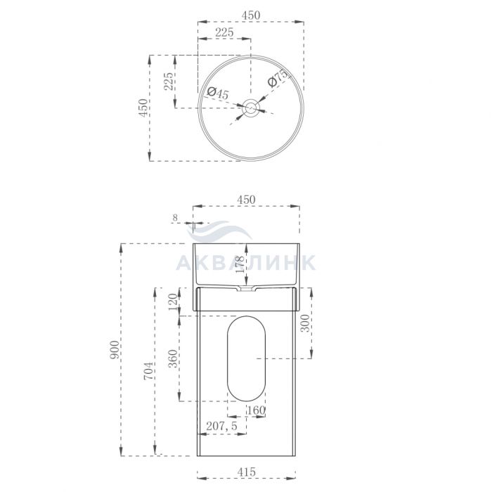 Раковина напольная Abber Kristall AT2701 Onyx-H 450х450х900 с техническим отверстием для монтажа у стены, черная