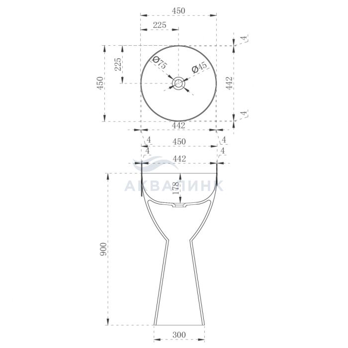 Раковина напольная Abber Kristall AT2703 Opal 450х450х900 коричневая