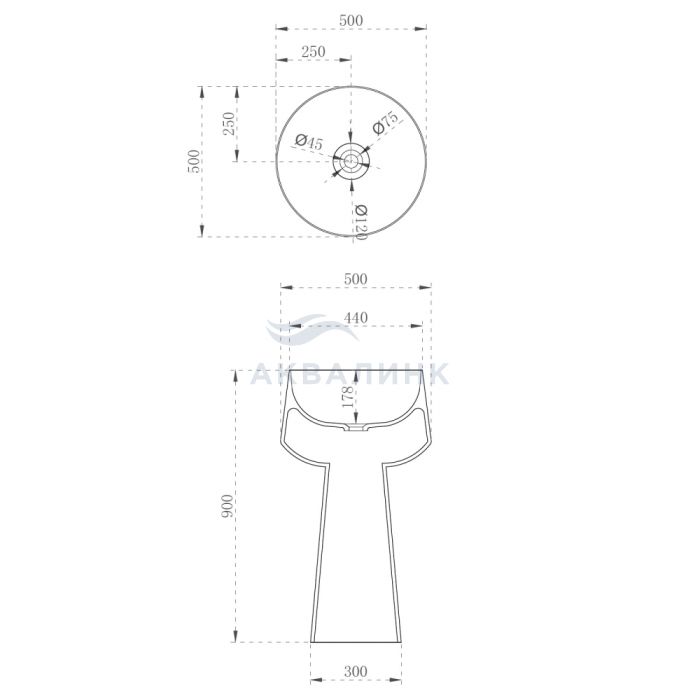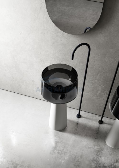 Раковина напольная Abber Kristall AT2706 White-Onyx 500х500х900 белая/черная