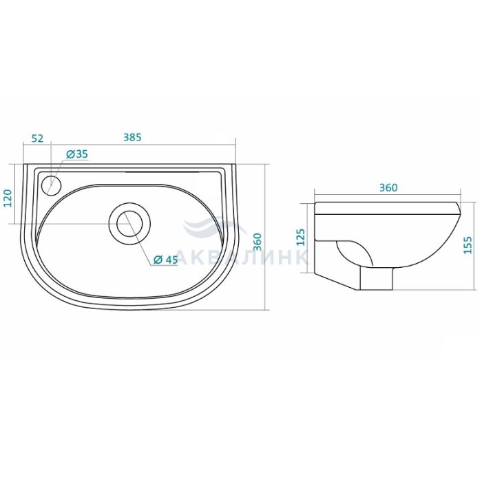 1.WH11.0.442 Умывальник "Бриз-40" л/отв Ширина:400мм, глубина: 270мм