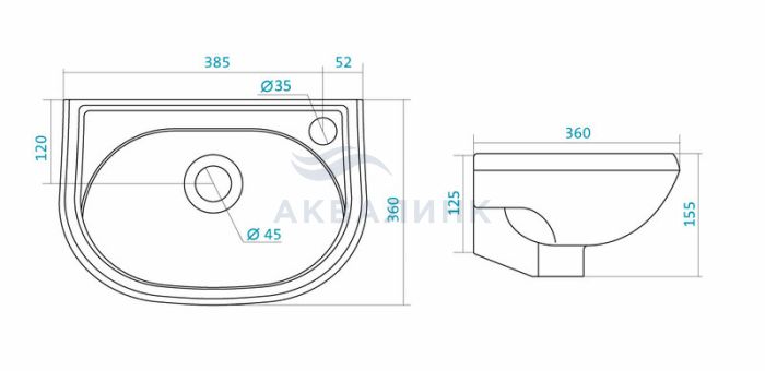 умывальник - 1шт., комплект креплений - 1шт. Смеситель и слив в комплект поставки не входят