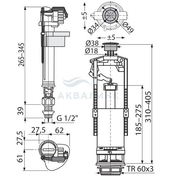 Выпускной комплект SA 2000SK 1\2 со стоп кнопкой SA2000SK 1/2'' Содержание комплекта: Впускной механизм A18–1/2" Сливной механизм A2000 Комплект прокладок Монтажный набор: болт M8×65 – 2 шт