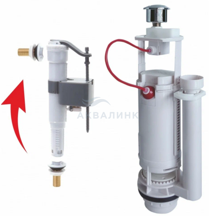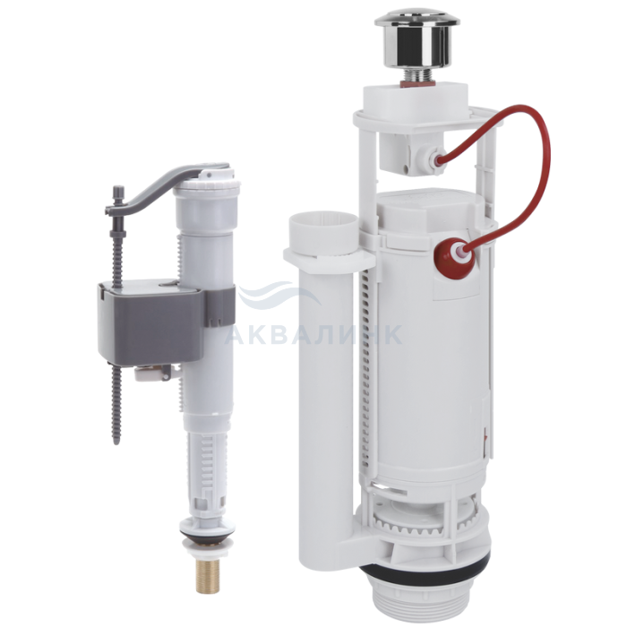 Арматура для бачка унитаза универсальная, 1/2", двухрежимная, кнопочная, хром, G1890.04 Совместима с любыми типами и моделями сливных бачков, как с нижним, так и с боковым подводом воды. Регулируется для любой высоты бачка унитаза, с любым объёмом воды. Периодически необходимо проверять, не накапливаются ли на запорном кольце каменный осадок, отложения солей, ржавчины или другие загрязнения, которые могут препятствовать нормальной работе клапана. При наличии подобных загрязнений кольцо необходимо промыть водой. Для этой цели нужно открутить кнопку, снять крышку бачка и вынуть из него корпус клапана слива поворотом против часовой стрелки. Для более тщательной очистки рекомендуется достать запорное кольцо и промыть его отдельно. Тип клапана: мембранный Подводка: боковая и нижняя Режим спуска: двухрежимная Материал: пластик + латунь Присоединительный размер: 1/2" Присоединении: латунь