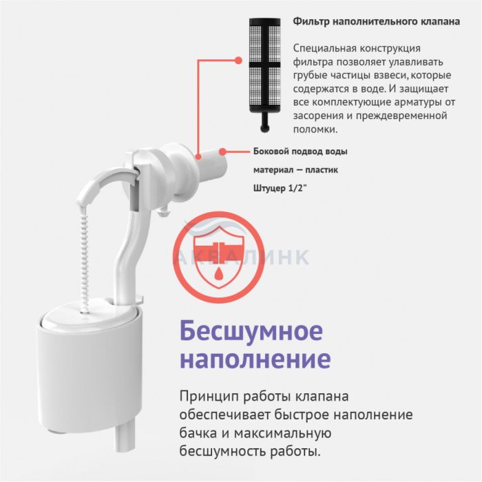Клапан наполнительный Eko Артикул: 030842 Наполнительный клапан: боковой подвод воды штуцер пластик 1/2 практичная конструкция Комплект прокладо