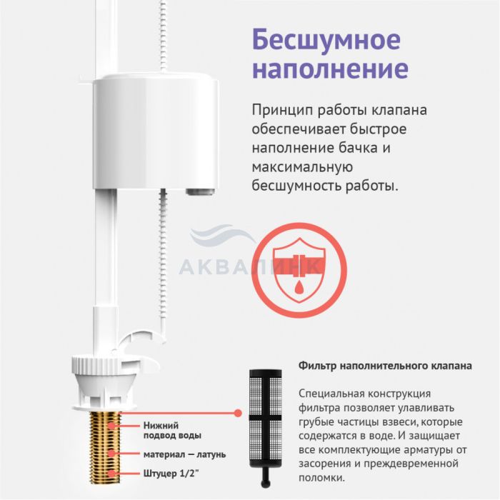 Клапан наполнительный Eko Артикул: 030741 Наполнительный клапан: нижний подвод воды штуцер латунь 1/2 практичная конструкция Комплект прокладо