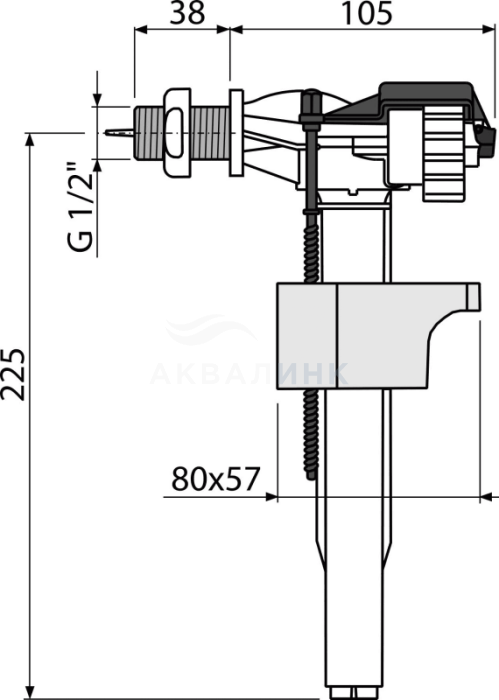 A16-1/2" Впускной механизм с боковой подводкой и металлической резьбой для керамических бачков