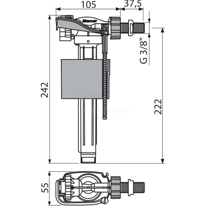 27735 впускной механизм боков. 3/8" лат.резьба A160-3/8" ALCAPLAST