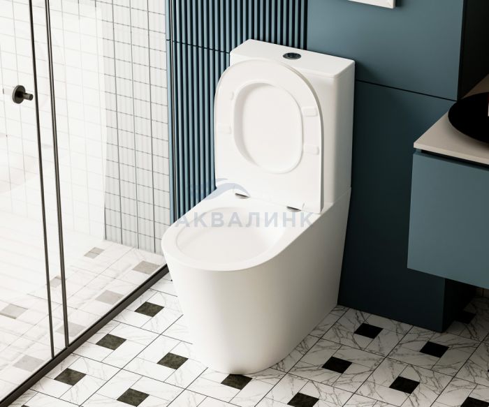 Унитаз-компакт безободковый Abber Bequem AC1112TMW с микролифтом, матовый, смыв "торнадо"