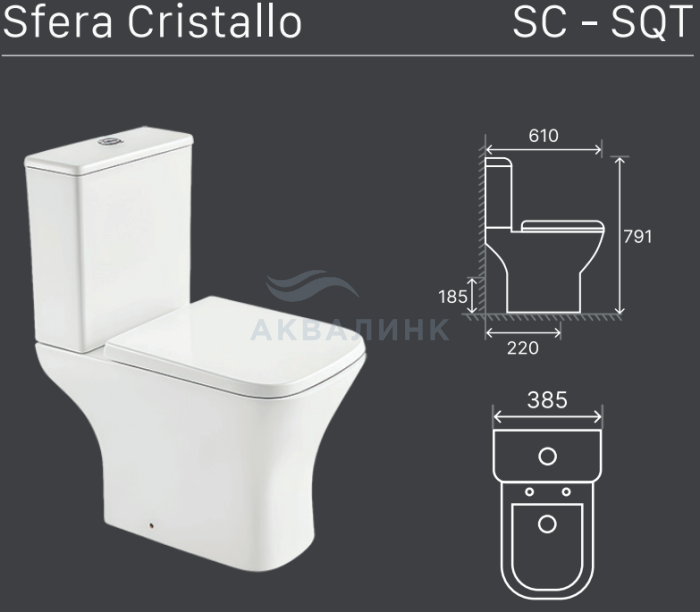 Унитаз-компакт безободковый Sfera Cristallo с микролифтом, смыв "торнадо"