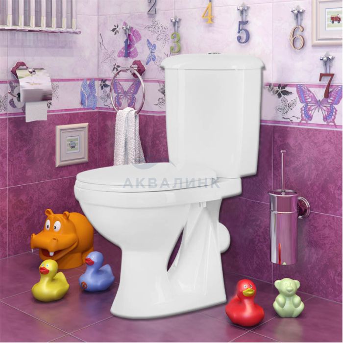 Суперкомпакт горизонтальный выпуск Козырьковая чаша ("антивсплеск") - с уклоном задней стенки. Крышка-сиденье - белое (гарант. 3г). Арматура одноуровневая, фирмы "Уклад". Круговой перфорированный смыв.