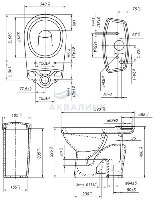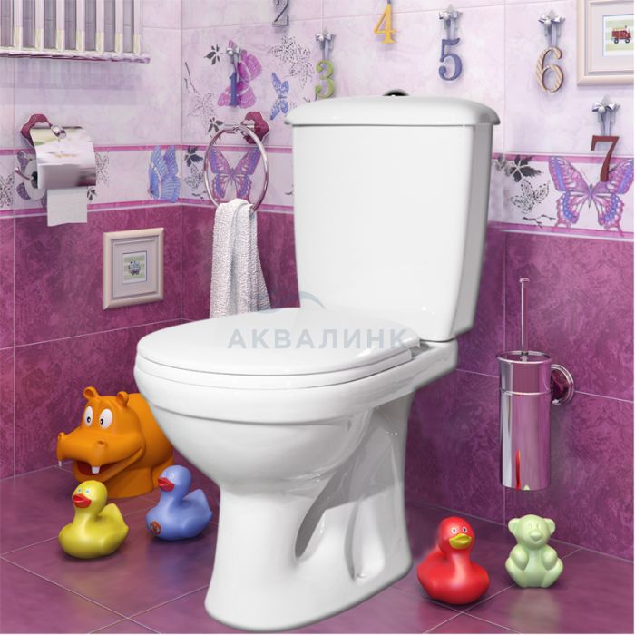 Керамический унитаз-компакт, выпуск в пол, однорежимный смыв АНИ ПЛАСТ, нижний подвод воды, полипропиленовая крышка-сиденье УКЛАД.
