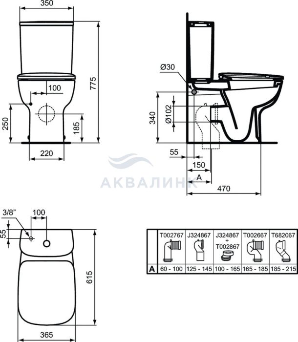 Унитаз напольный Ideal Standard Esedra T282001 укороченный без бачка и сиденья