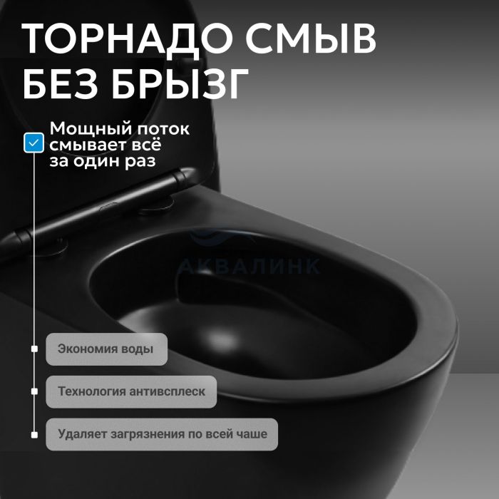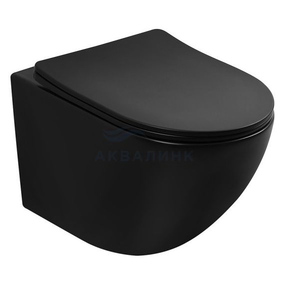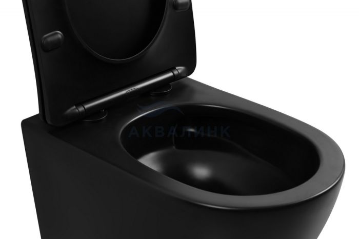 Унитаз подвесной безободковый Abber Bequem AC1100TMB укороченный с микролифтом черный матовый, смыв "Торнадо"