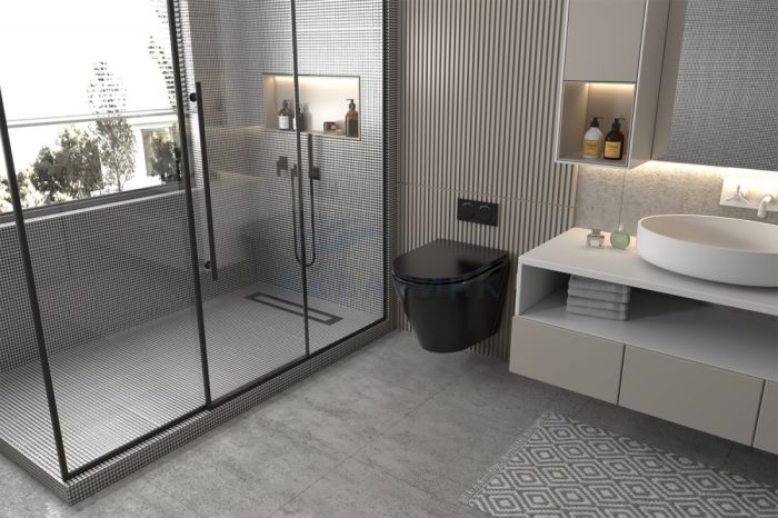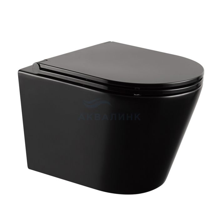 Унитаз подвесной безободковый Abber Bequem AC1102MB укороченный с микролифтом черный матовый