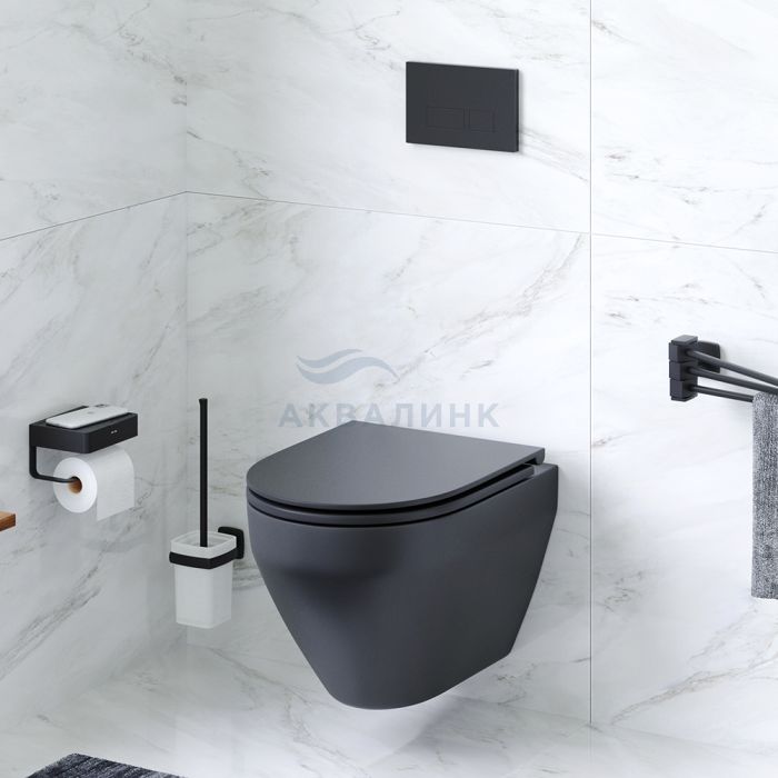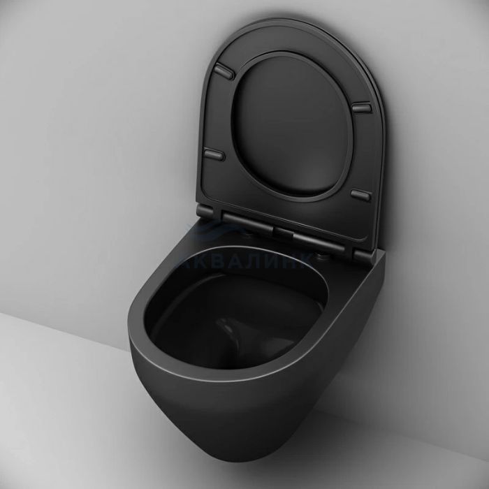 Унитаз подвесной безободковый Am.Pm Spirit V2.0 C701700MBSC с тонким сиденьем микролифт, черный матовый