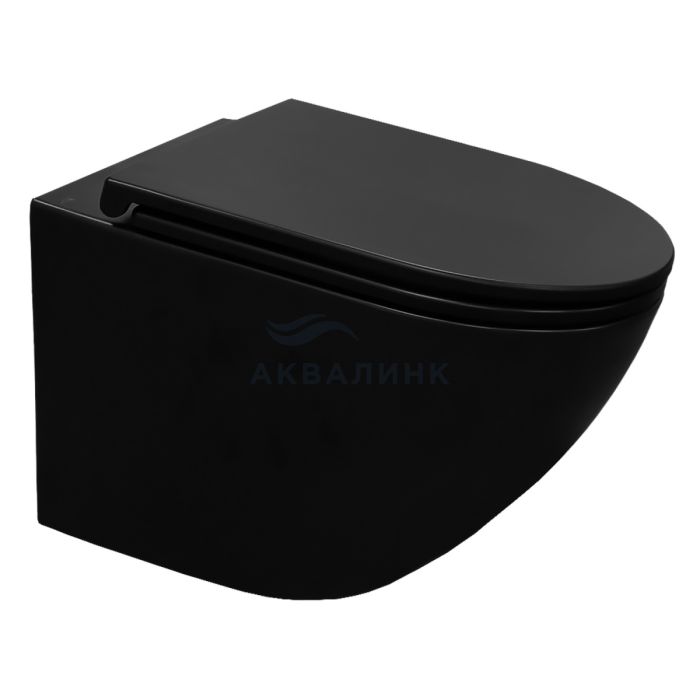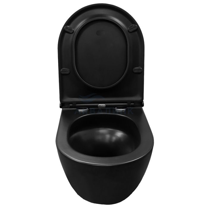 Унитаз подвесной безободковый Azario Grado AZ-0046-UQ3-MB укороченный с микролифтом, смыв "торнадо" черный матовый