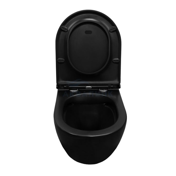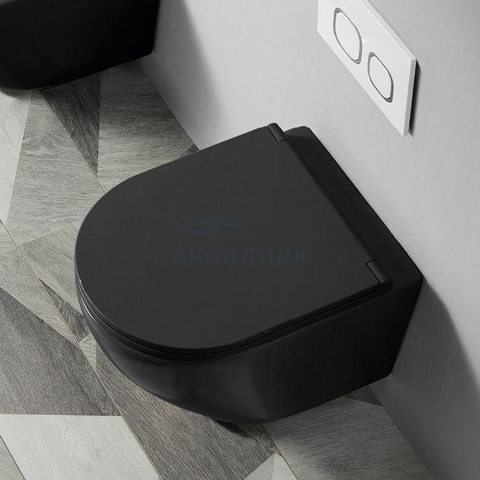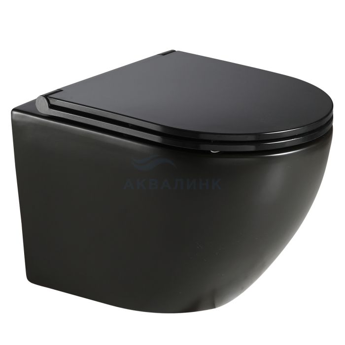Унитаз подвесной безободковый Azario Grado AZ-0046N-MB укороченный с микролифтом, черный матовый
