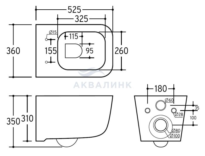 Унитаз подвесной безободковый CHARUS Pinto EWC700-126W с микролифтом