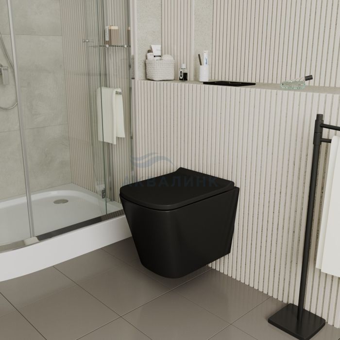 Унитаз подвесной безободковый D&K Berlin DT1436025 укороченный, микролифт, черный