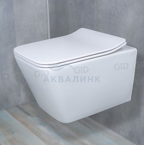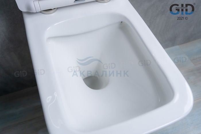 Керамический подвесной унитаз Gid Tr2144 белый безободковый с сиденьем микролифт из прочного дюропласта