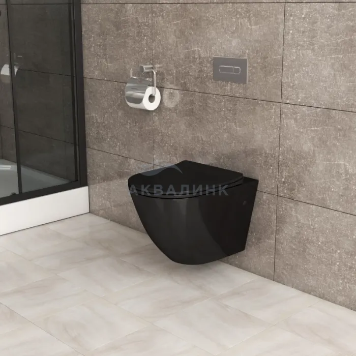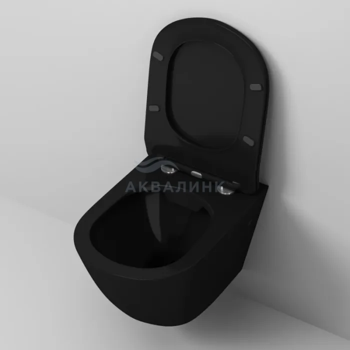 Унитаз подвесной безободковый Grossman GR-4411S с тонким сиденьем с микролифтом черный