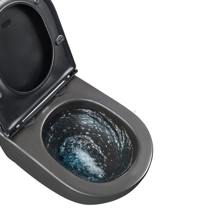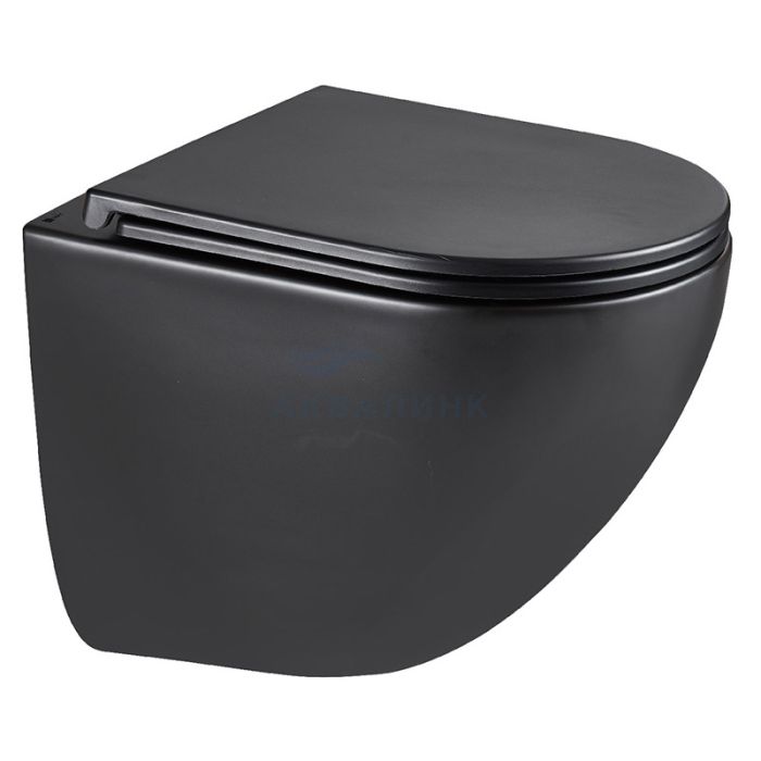 Унитаз подвесной безободковый Lemark Glazer укороченный, с микролифтом, черный матовый, смыв "торнадо"