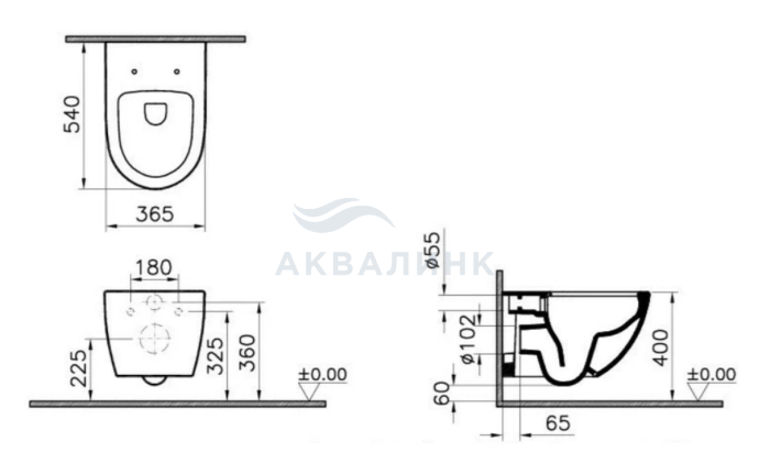 Унитаз подвесной безободковый Vitra Sento Rim-Ex 7748B083-0101 без сиденья, черный матовый