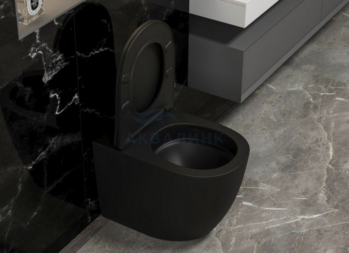 Унитаз приставной безободковый Abber Bequem AC1111TMB с микролифтом, черный матовый, смыв "торнадо"