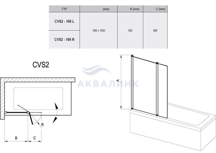 Шторка для ванны Ravak Chrome CVS2-100 R блестящая+транспарент 7QRA0C00Z1
