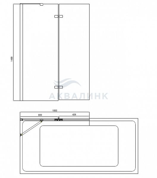 Шторка на ванну BandHours Eko 100 1000х1400 профиль черный матовый