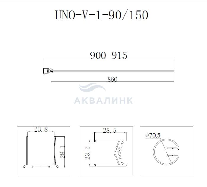 Шторка на ванну BelBagno UNO-V-1-90/150-C-Cr
