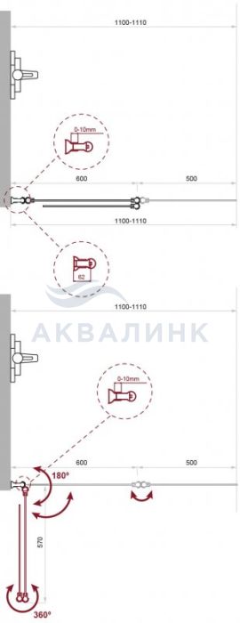 Шторка на ванну WasserKRAFT Berkel 48P распашная