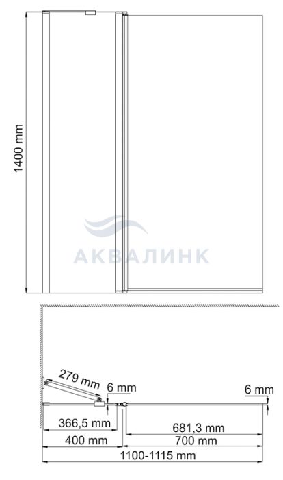 Шторка на ванну WasserKRAFT Main 41S двухстворчатая раздвижная