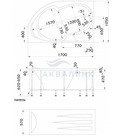 Ванна. Каркас, панели, ножки и аксессуары в комплект не входят и приобретаются отдельно!