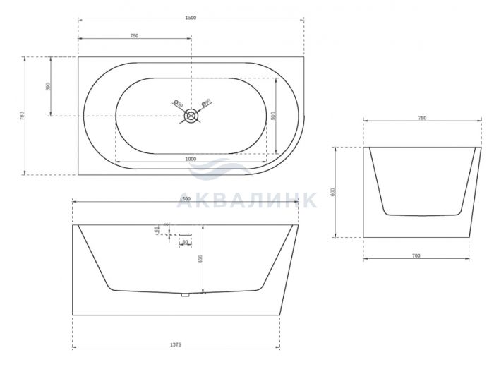 Ванна, слив-перелив, стальной каркас