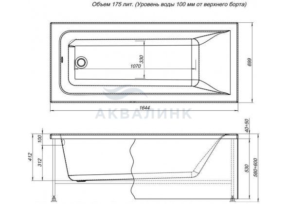 Ванна акриловая Aquanet BRIGHT 165х70 (229217)