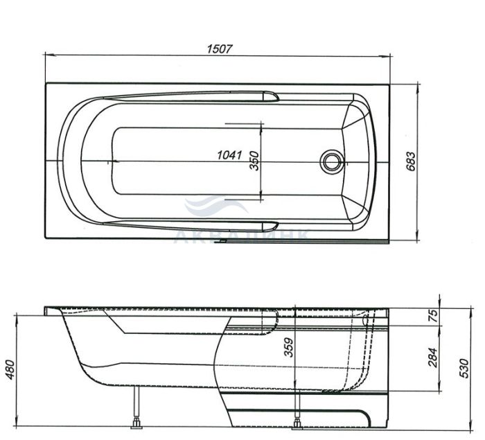 Ванна акриловая Aquanet EXTRA 150х70 (208672)