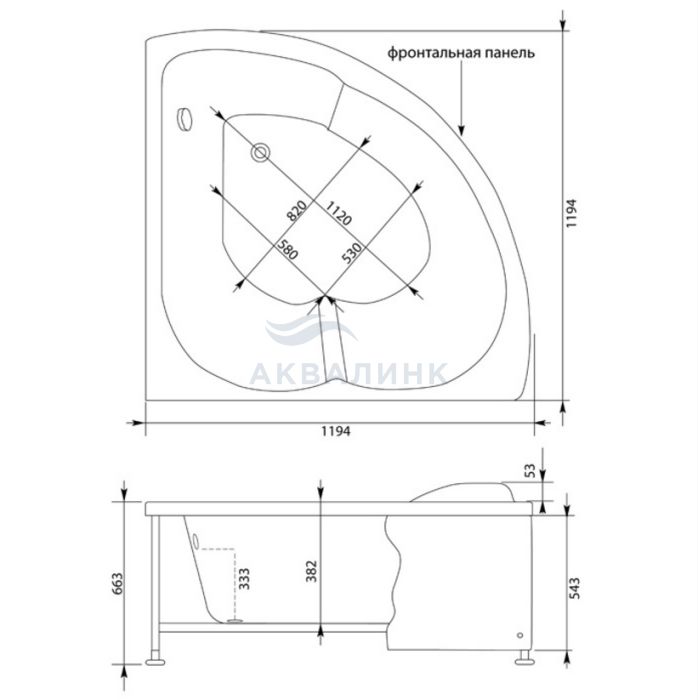 Ванна акриловая Aquanet FREGATE 120х120 к/с (205488)