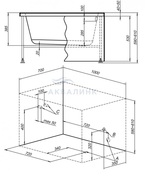 Ванна акриловая Aquanet SEED 100х70 (216308)