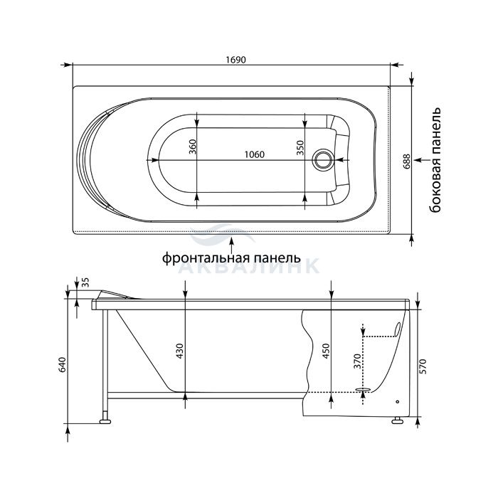Ванна акриловая Aquanet WEST 170х70 (239757)