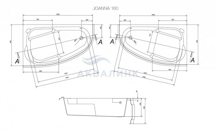 Ванна акриловая Cersanit JOANNA 160x95 асимметричная левая