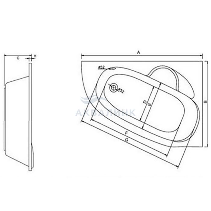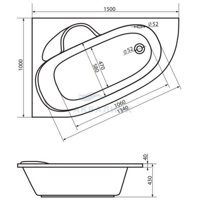Ванна акриловая Corpanera Siena правая 150*100 белый