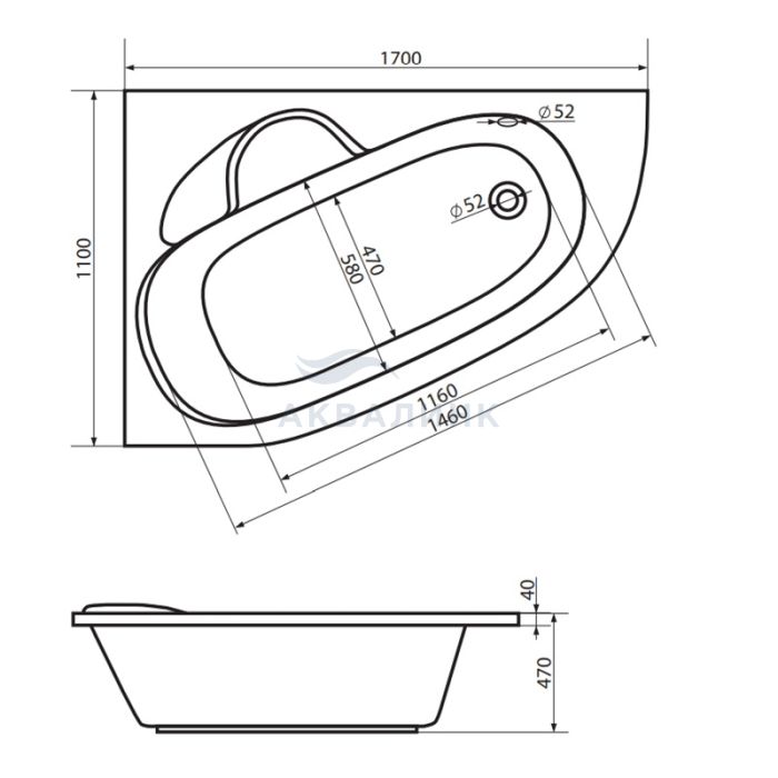 Ванна акриловая Corpanera Siena правая 170*110 белый